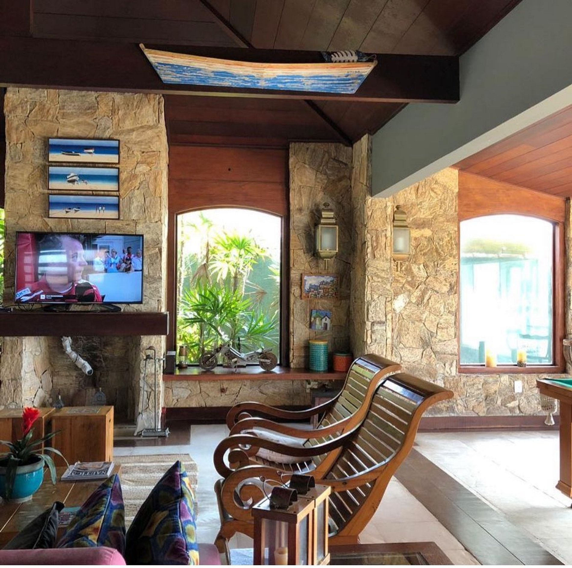 A casa Green Lounge Búzios (@greenloungebuzios) é pé na areia, na praia de Manguinhos, em Búzios. Ideal para reunir amigos e família, com opção de aluguel por temporada e eventos. Acomoda até 20 pessoas em 6 suítes com ar-condicionado, além de ampla área de lazer com piscina, sauna seca e dois espaços gourmet.
